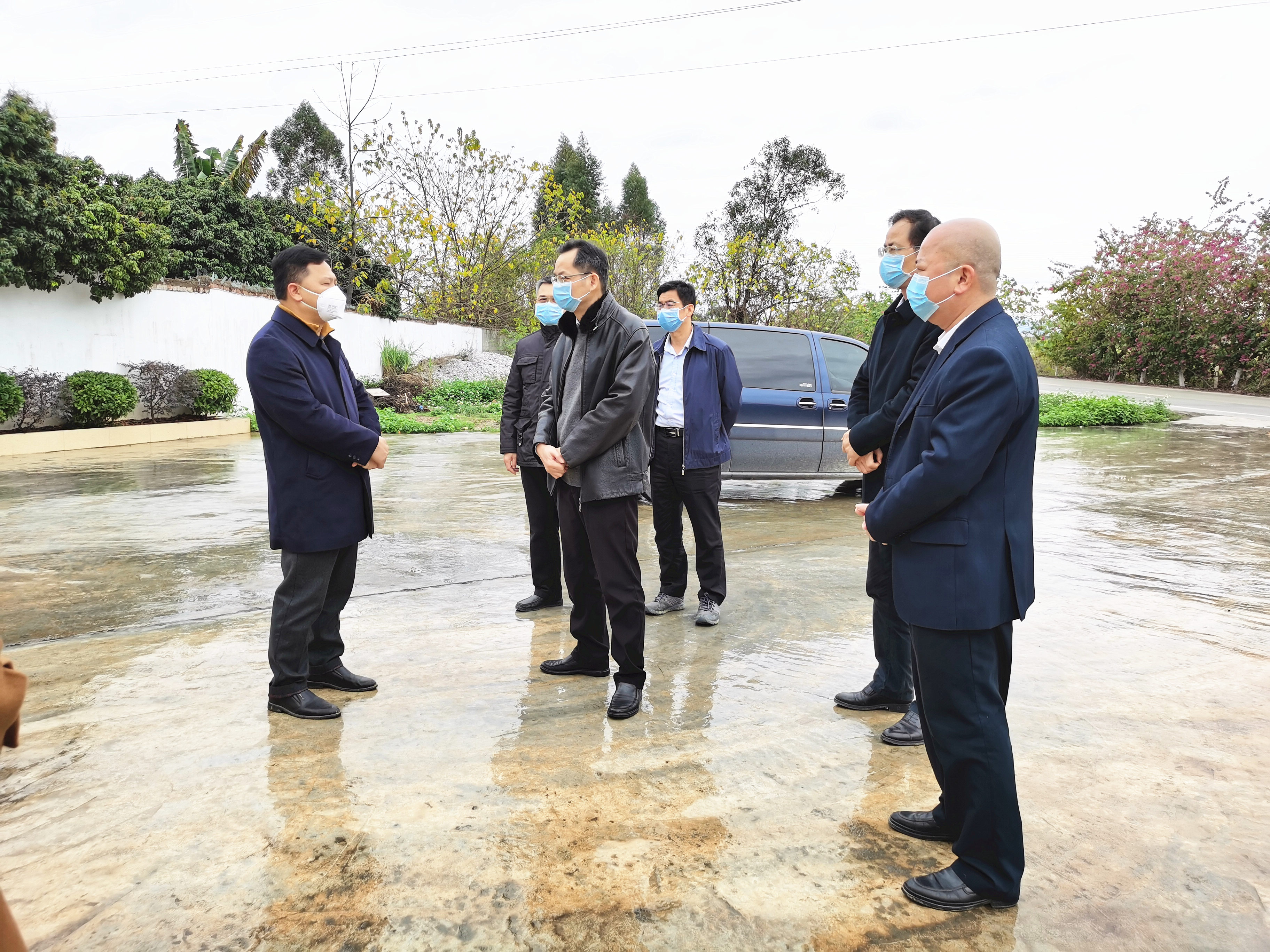 ▲2月9日百色市人大党组成员、平果县委书记黄志愿莅临丝瓜视频污版黄色软件下载集团广西富鹏农牧有限公司金沙种鸡繁育基地调研疫情防控与稳产保供工作。