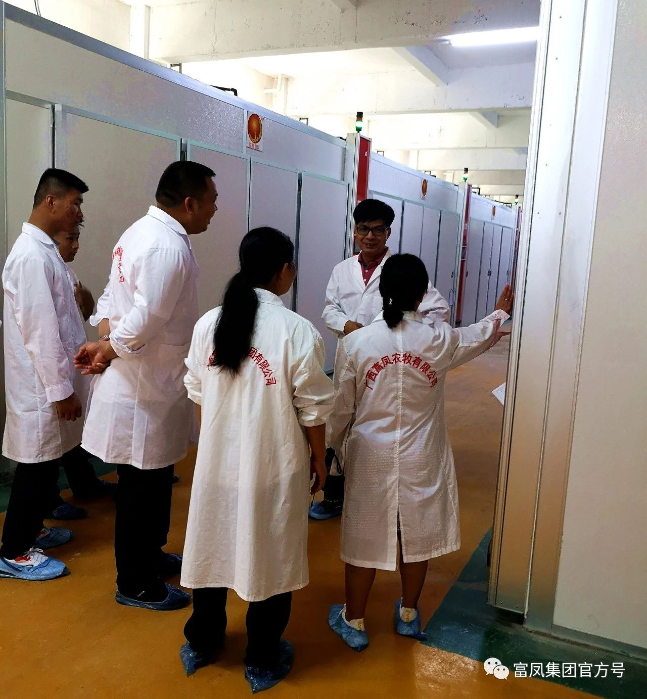 ▲在孵化车间,检查和了解鸡苗生产情况,并就相应的技术指导。