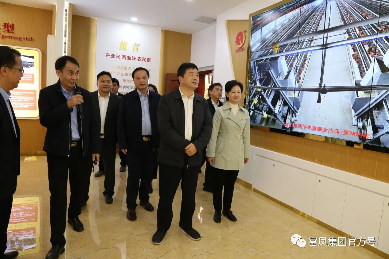 11月30日下午,自治区人民政府副主席方春明莅临丝瓜视频污版黄色软件下载集团广西富鹏农牧有限公司考察调研,随同前来调研的自治区领导有,百色市人大常委会副主任、平果市委书记黄志愿,百色市副市长古俊彦、平果市副市长蓝云峰等陪同考察,丝瓜视频污版黄色软件下载集团李非董事长、谢小彬总经理、朱宁科总经理、韦宗海常务副总、黄文略常务副总等代表集团公司热烈欢迎各位领导莅临指导考察,并随同参观富鹏公司文化展厅、宣传栏、生产车间,就公司建设生产情况做详细汇报。